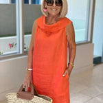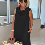 Freja™ är klänningen för dig som vill kombinera vardagskomfort med tidlös stil. Den ärmlösa designen, den runda halsringningen och den raka, lösa passformen skapar en silhuett som känns både avslappnad och välklädd. Med dolda sidofickor och en look som funkar året runt är Freja™ ett självklart val – oavsett om du bär den solo i solen eller med lager på lager när det blir kyligare.