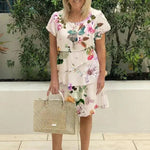 Yvonne™ | Plisserad Blommig Klänning med Rufs